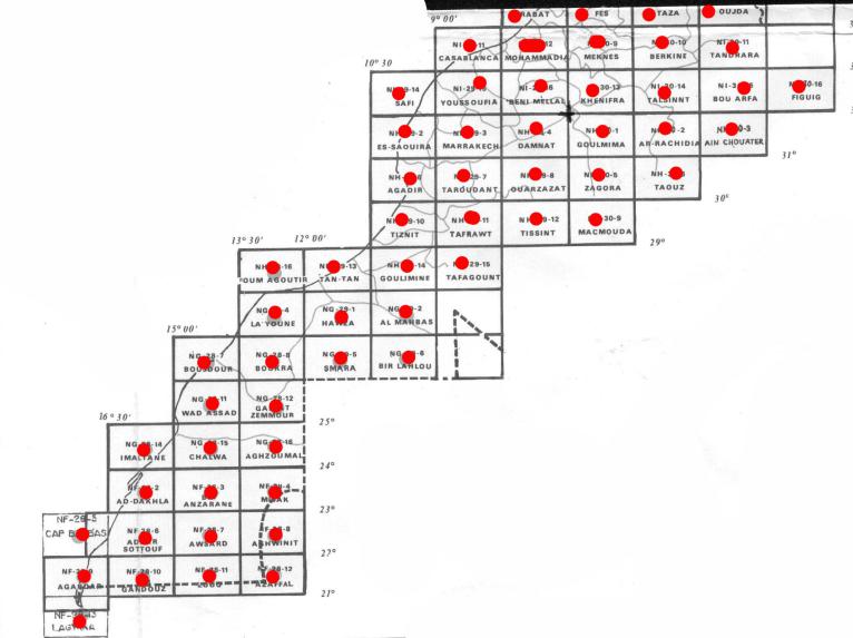 Le Maroc COMPLET du N au S et de l’E en O ! Voir les zônes marquées d’un point rouge ci-dessous..